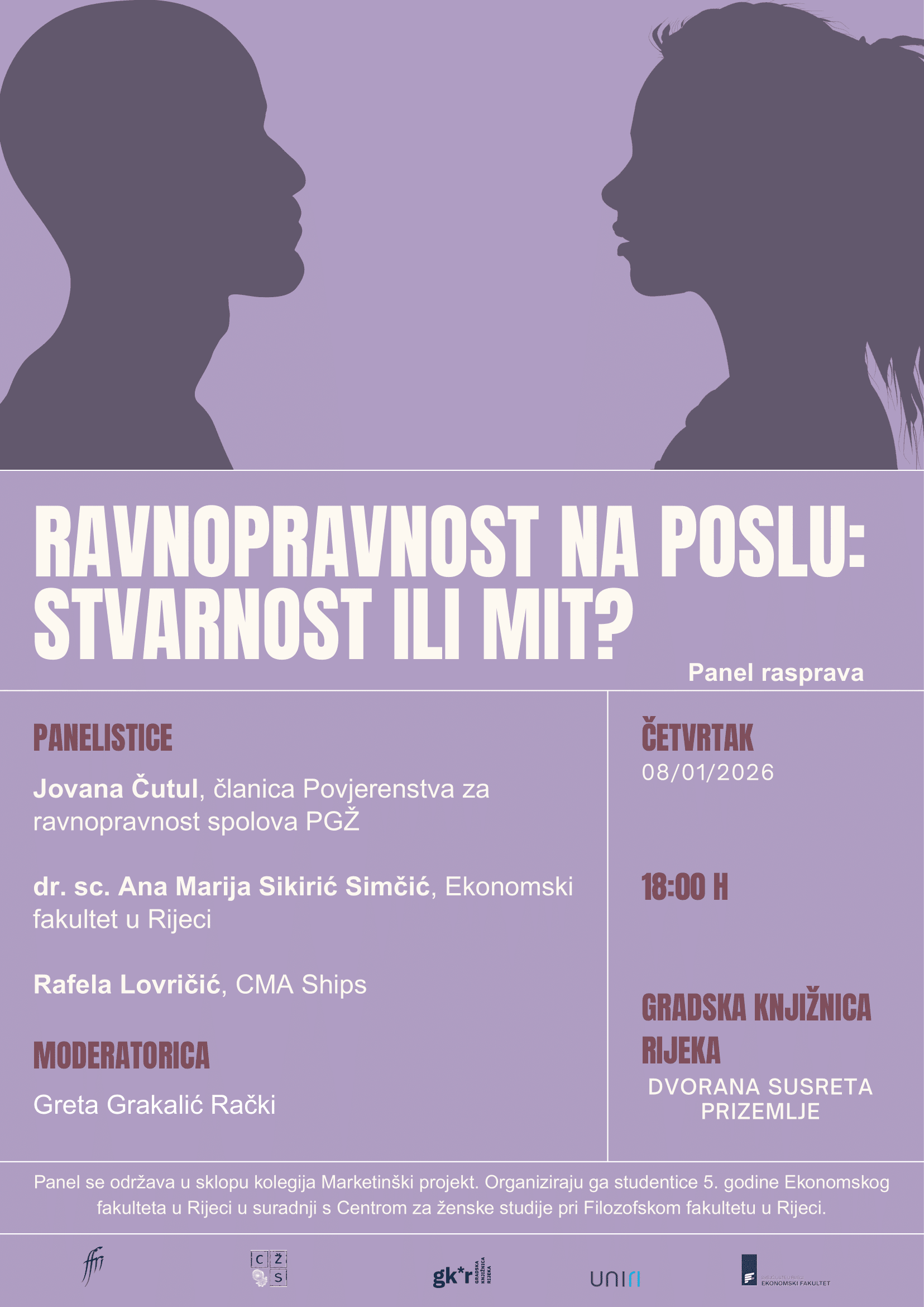 Panel se održava u sklopu kolegija Marketinški projekt, a organiziraju ga studentice 5. godine Ekonomskog fakulteta u Rijeci u suradnji s Centrom za ženske studije pri Filozofskom fakultetu u Rijeci.